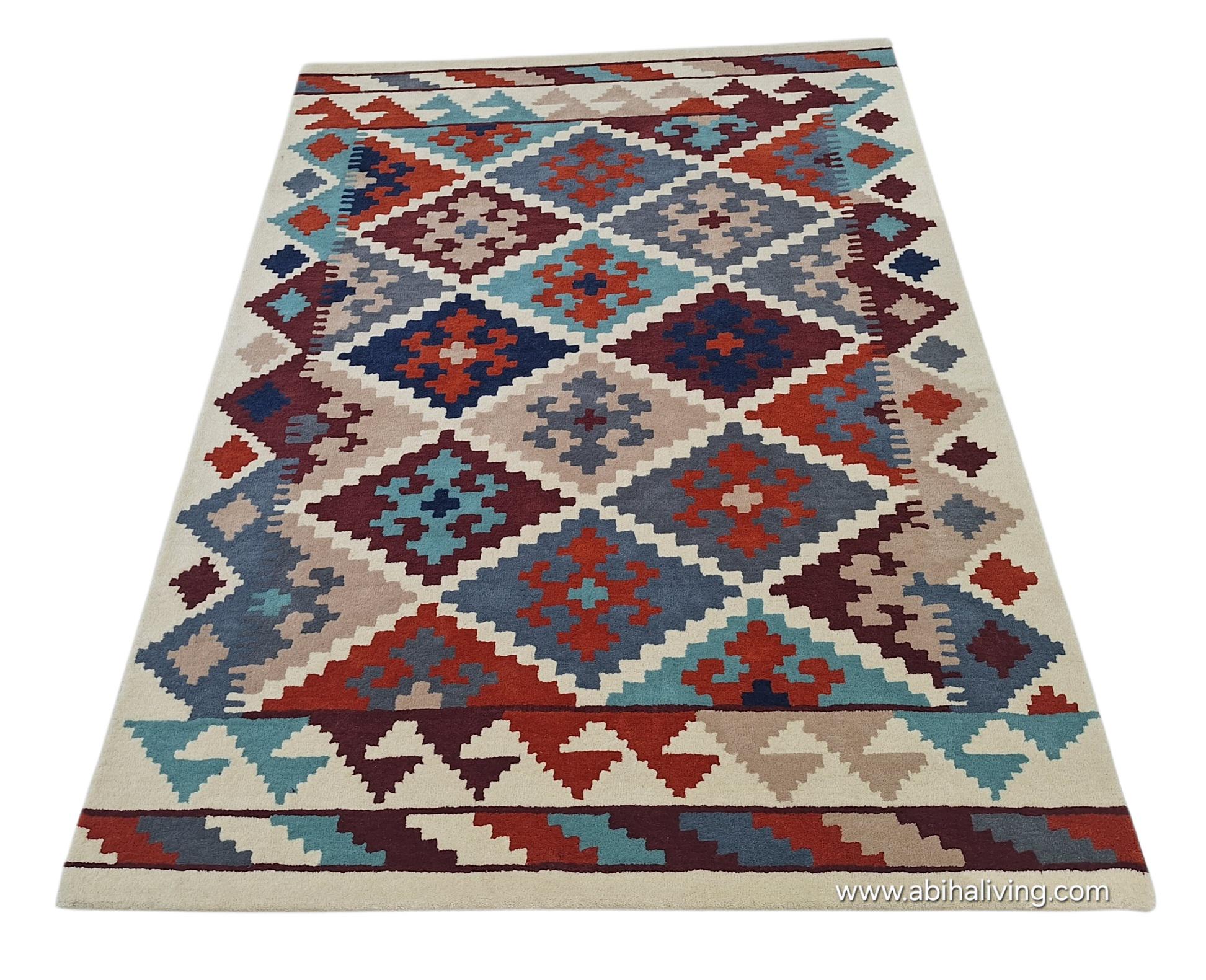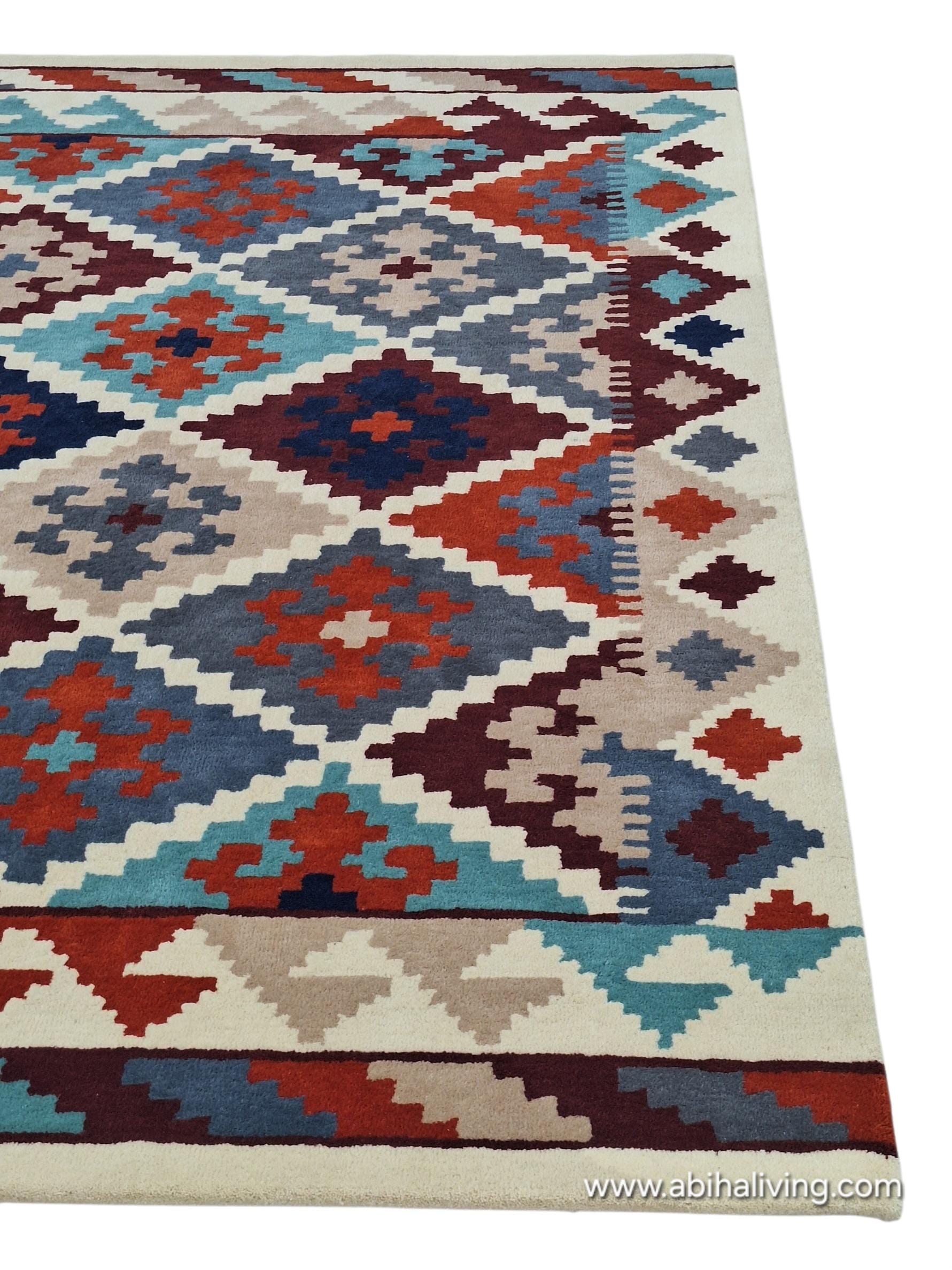 Hand Tufted Wool Rug: Geometric Kilim Design